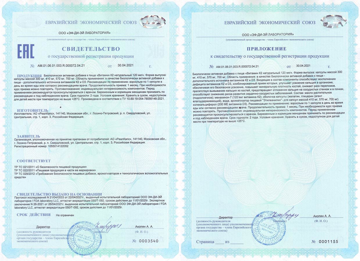 Свидетельство о государственной регистрации № AM.01.06.01.003.R.000072.04.21 от 30.04.2021 г, ТУ 10.89.19-054-78056148-2021.